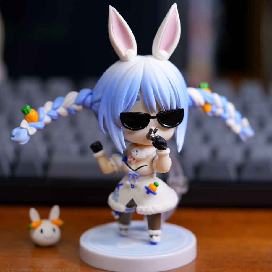 ねんどろいど兎田ぺこらは細かいパーツが多く,表情を3つのパーツから選択できて色々なポージングもできるので楽しいです↓